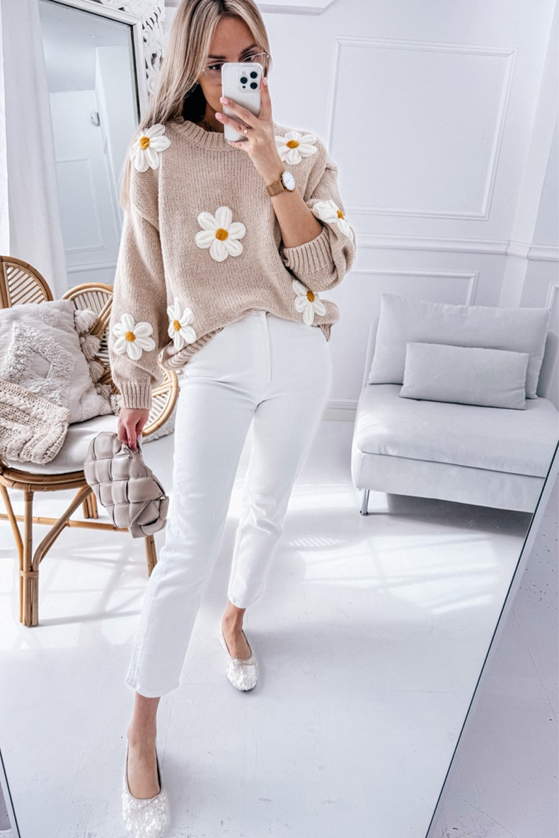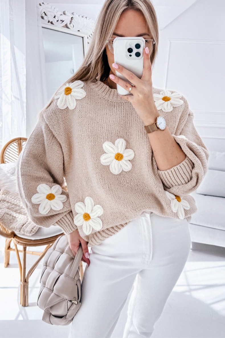 Autumn Winter Pullover Round Neck Long Sleeves Top Women Design Floral Crochet Sweater Women