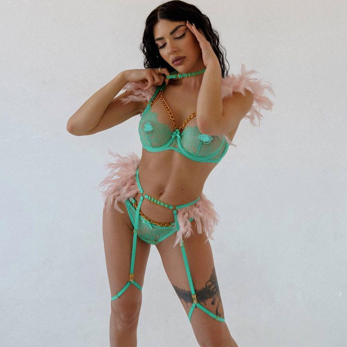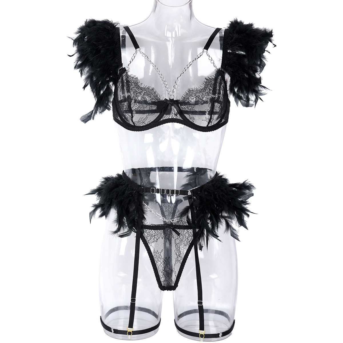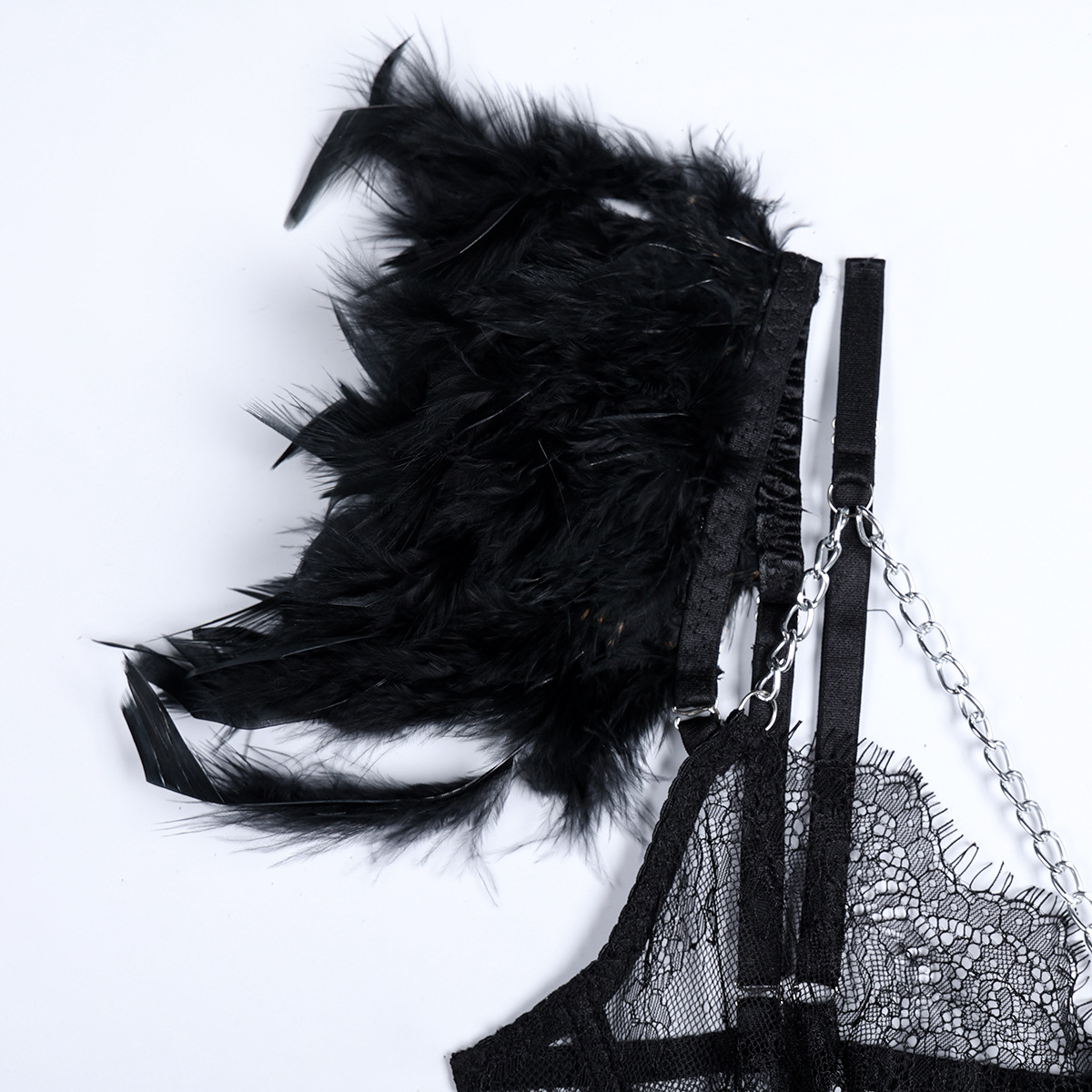 Element: Feather,Cutout,Lace/Tulle/Fishnet,Metal Chain