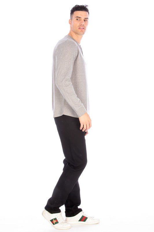 MEN'S HENLEY LONG SLEEVE S-XL (2-2-1-1) M-XXL (1-2-2-1) 60% COTTON & 40% POLYESTER IMPORTED MODEL IS 6'2, WEARING SIZE M.